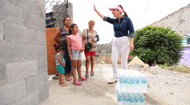 Para solidarizarse con la comunidad y contribuir a aminorar la necesidad de agua potable entre las familias regias, el Gobierno de Monterrey a través del DIF municipal emprendió la entrega de agua embotellada casa por casa.