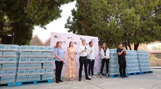 “La entrega de 100 mil 800 botellas de agua iniciará esta tarde y continuará en diversas colonias”, explicó Marilú García de Colosio.