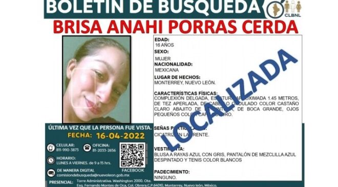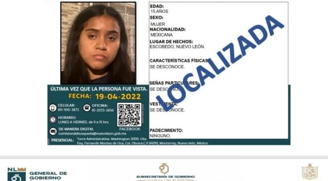 Nuevo LeónLOCALIZA GOBIERNO DE NL A 5 MUJERES MÁS EN LAS ÚLTIMAS 24 HORAS abril 21, 2022 - por Rodolfo JR García González El Estado, a través de la Comisión Local de Búsqueda de Personas, informó que al corte de las 19:00 horas del 20 de abril, fueron localizadas 5 mujeres más que contaban con reporte de búsqueda.