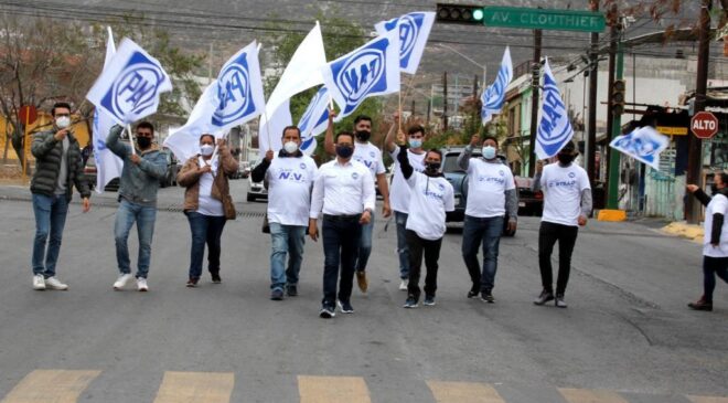 Con un pegoteo en el cruce de las calles Manuel J. Clouthier y Cromo, que es punto de unión entre San Pedro y Santa Catarina, Héctor Israel Castillo Olivares arrancó su campaña como candidato a diputado federal del Partido Acción Nacional por el Distrito 1.