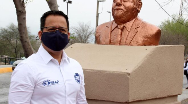 Acompañado por su esposa Laura Vanegas de Castillo y sus hijos, el candidato arribo a las 11:00 horas y desde el busto erigido en honor de Clouthier, el aspirante repitió la frase del Maquío: “sólo se rinde aquel que ha dejado de luchar”.