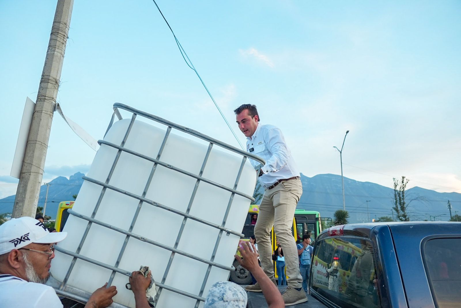 municipio de García, el alcalde electo Manuel Guerra Cavazos ha gestionado y entregado 500 tótems de 1,000 litros a diversos sectores vulnerables del municipio.
