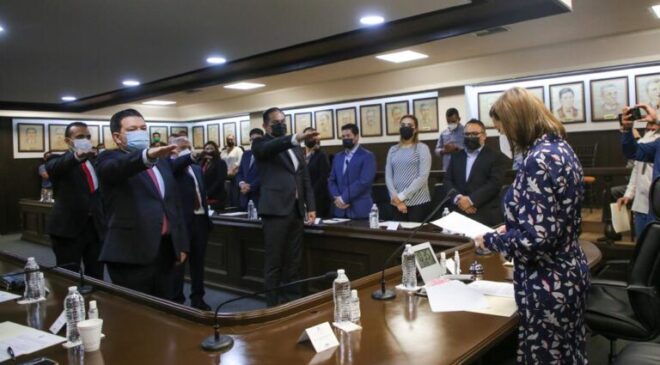 Además, por unanimidad se ratificó a Epigmenio Garza como Secretario de Ayuntamiento; Alejandro Espinoza Eguía, como Secretario de Finanzas y Tesorero Municipal; así como a Francisco Garza, Secretario de la Función Pública, quienes rindieron protesta ante la Alcaldesa.