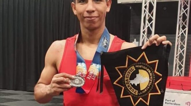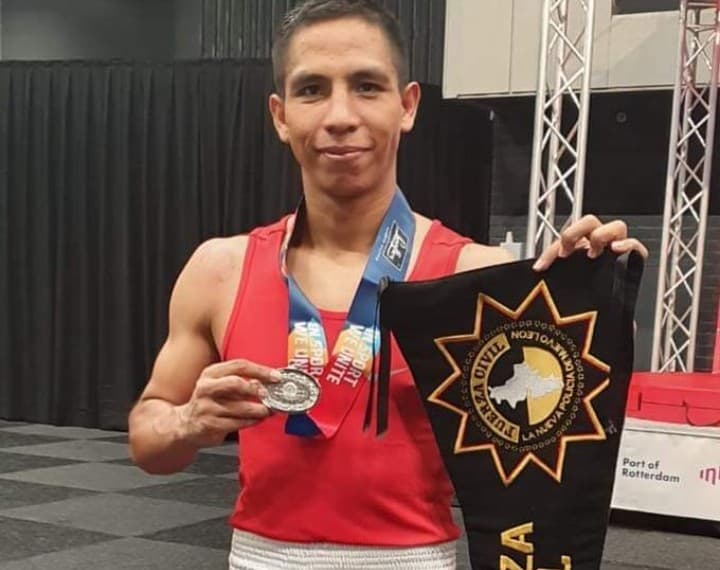 El elemento de Fuerza Civil de Nuevo León, José Javier Rodríguez, obtuvo la medalla de plata en la diciplina de Boxeo, durante su participación en los Juegos Mundiales de Policías y Bomberos 2022 que se lleva a cabo en Rotterdam, Holanda.