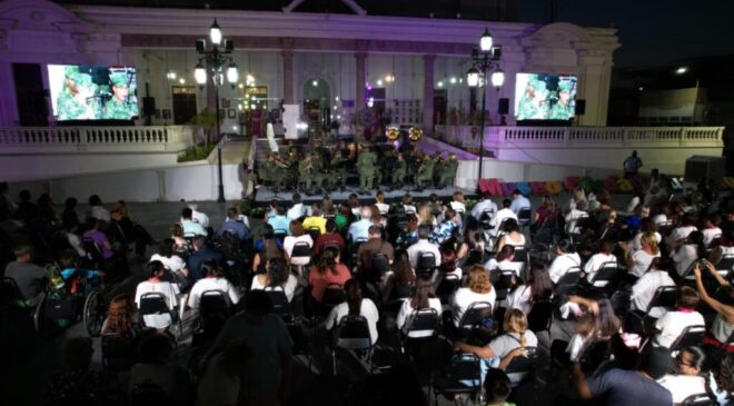 En el marco del primer aniversario luctuoso de María Elena Chapa, quien fuera legisladora y activista, se ofreció un concierto con la participación de la Brigada Sinfónica de la Cuarta Región Militar en Guadalupe.