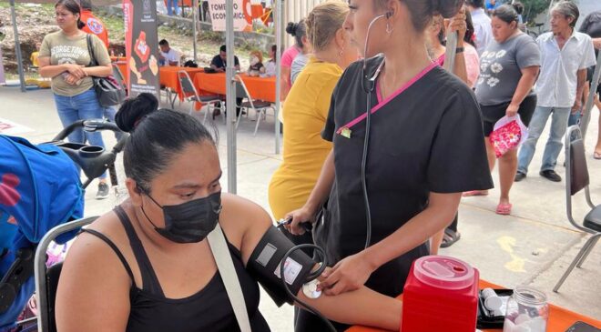La presidenta del DIF municipal, Paola García Yves, encabezó la jornada en la que, por instrucción del Alcalde Jesús Nava Rivera, se llevaron servicios gratuitos, como consulta médica a jóvenes, niños y adultos mayores que se dieron cita en la Escuela Secundaria 75 Justo Díaz Ábrego en dicho sector.