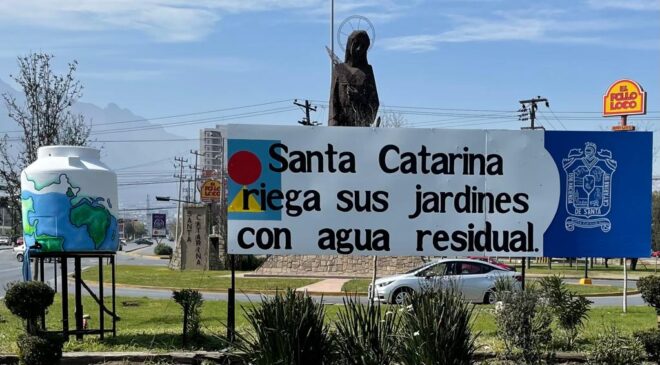 “Todos los espacios públicos de Santa Catarina, el agua que utilizamos es agua reciclada, agua tratada, tenemos un sistema con aguas industriales y lo utilizamos en camellones, tenemos cuatro gazas con aguas residuales donde llegan nuestras pipas y posteriormente es dejada en cisternas de espacios públicos. En Santa Catarina ni una gota más de agua potable en espacios públicos”, señaló el Alcalde Jesús Nava Rivera.