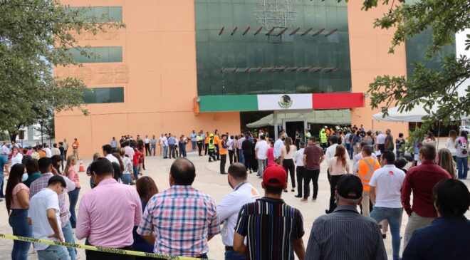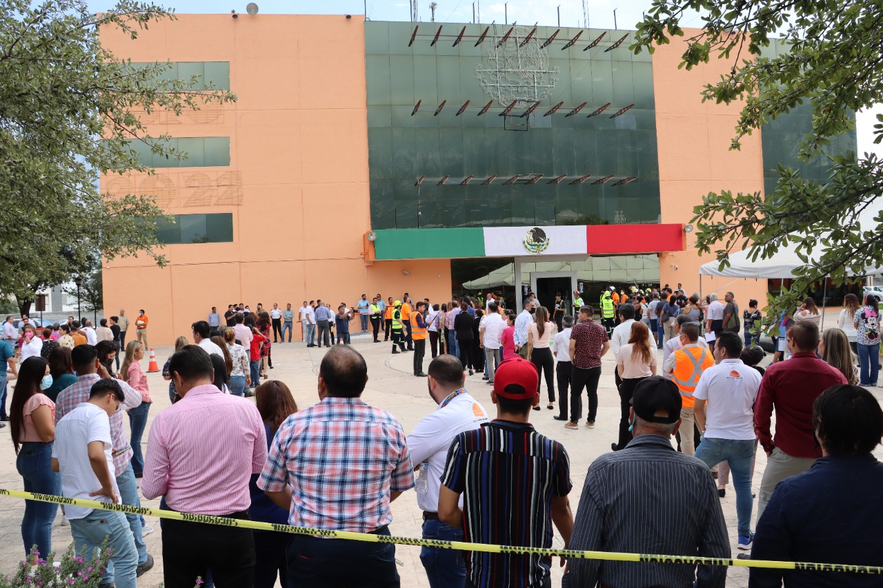 Con el apoyo del Grupo Jaguares de Protección Civil de Santa Catarina, el desalojo de 170 personas, entre servidores públicos y visitantes, del inmueble municipal, se realizó en un lapso de tres minutos, en completo orden.