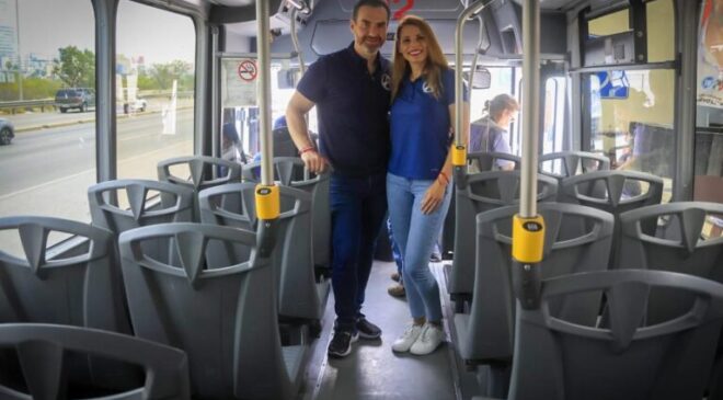 El aspirante de la alianza “Fuerza y Corazón por Nuevo León” presentó un camión prototipo y detalló que en una primera etapa adquirirá 150 unidades modernas, cómodas y climatizadas que permitirán proteger el medio ambiente ya que funcionan con gas natural.