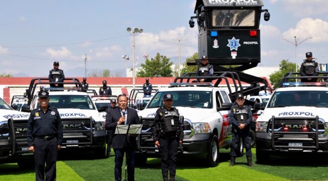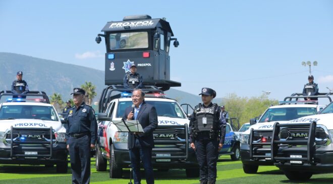 Al entregar patrullas y equipo nuevo a los policías, el Edil explicó que se realizaron cambios sustanciales en tres ejes de la Proxpol: su metodología y capacitación, infraestructura y tecnología digital de punta.