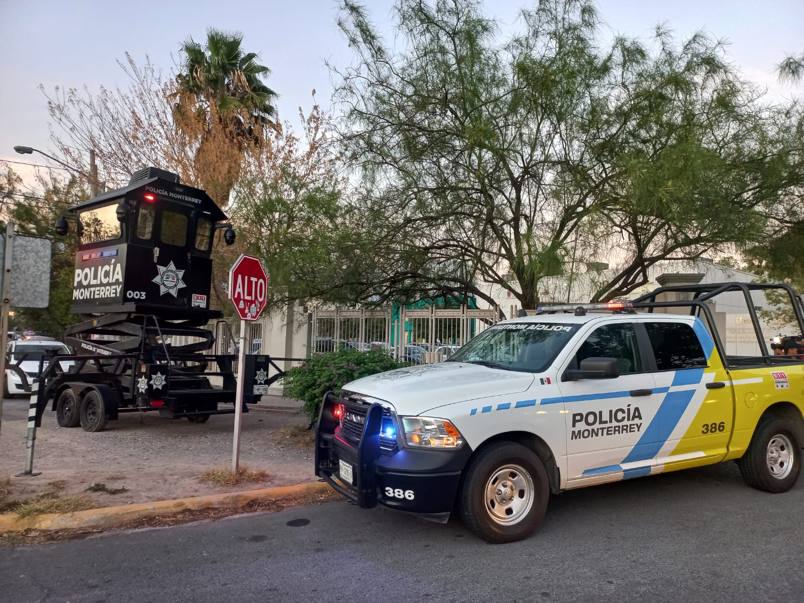 Ángel Antonio Salomón Magaña, Comandante de la zona poniente de la Policía de Monterrey, dijo que reforzaron la vigilancia en este sector con más elementos para la protección de estudiantes, maestros, personal administrativos, así como de los trabajadores de negocios y vecinos de la colonia Mitras Centro.