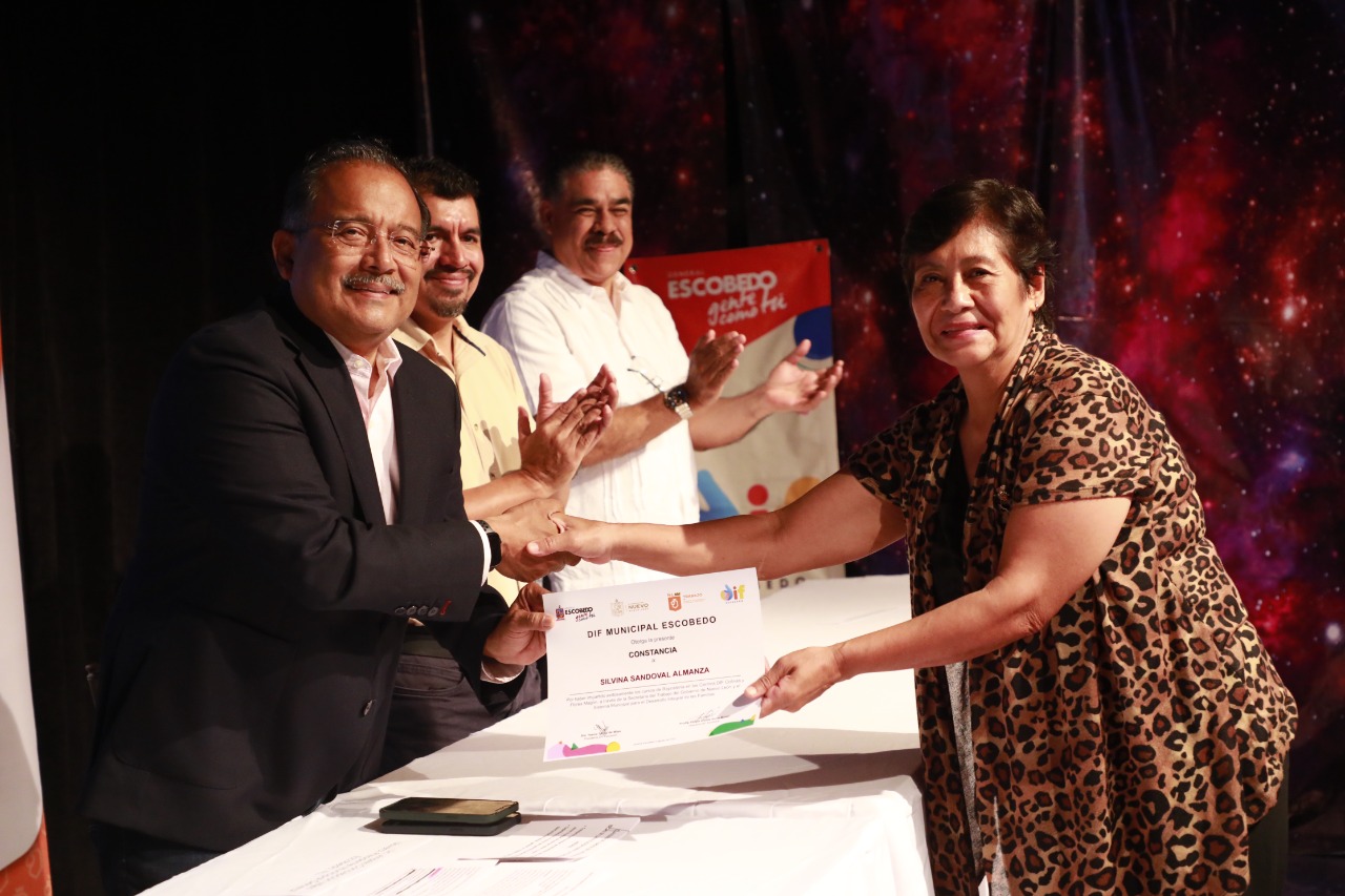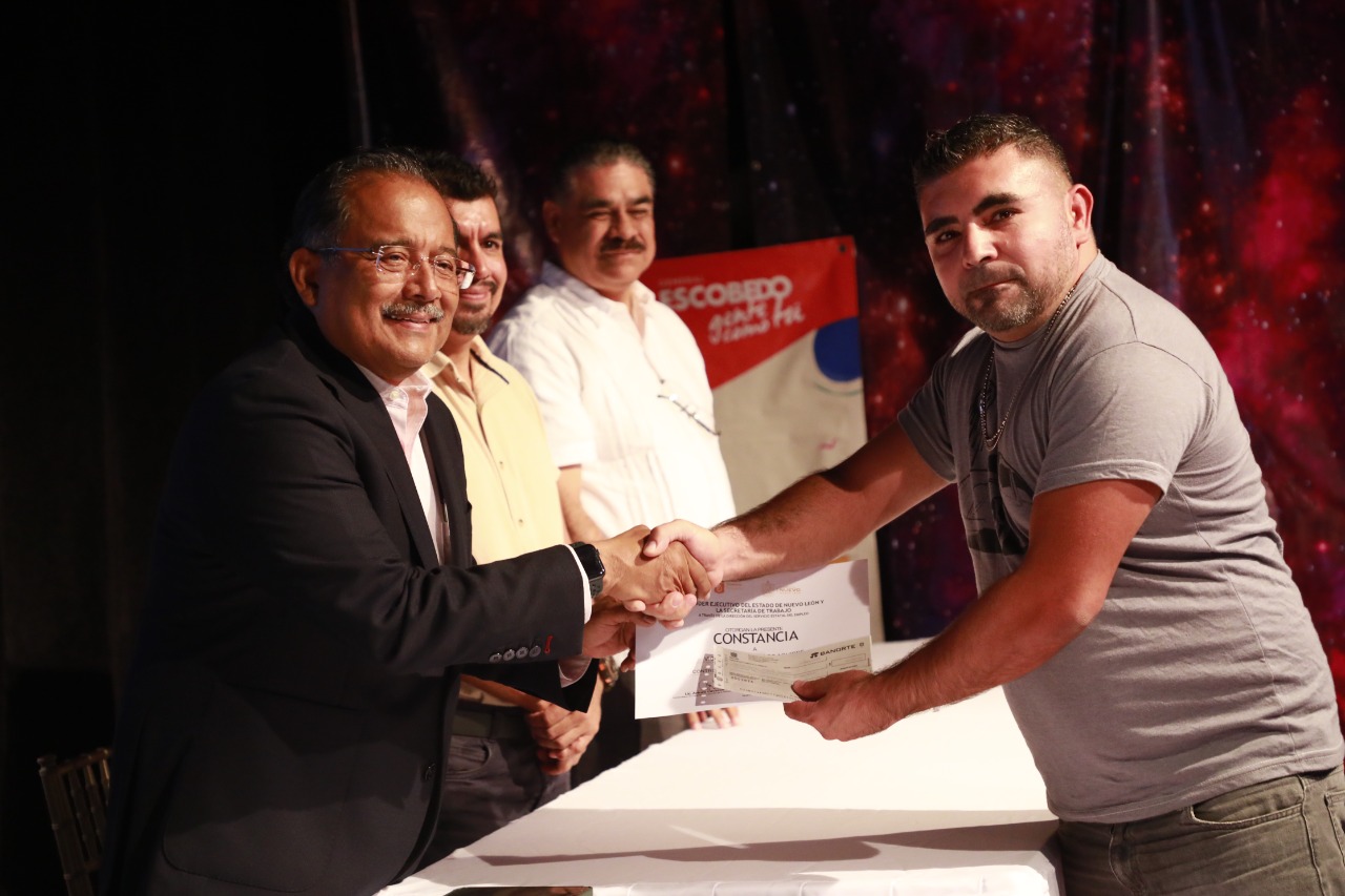 Durante la entrega, estuvieron presentes el Subsecretario de Capacitación y Empleo en Nuevo León, Arturo Cavazos Leal; el Coordinador de Becas de Capacitación y Empleo, Carlos Elizondo Carmona; el Director del ICET Escobedo, José Sánchez Ramos y el Director Administrativo del DIF Escobedo, Francisco Ramos Bazaldúa.