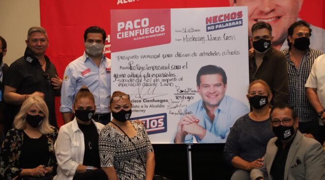 A fin de promover en la sociedad el acceso al arte y cultura e implementar estrategias para reactivar el sector cultural, el candidato a la coalición PRI-PRD “Va Fuerte por Nuevo León” a la alcaldía de Monterrey, Paco Cienfuegos pactó un programa integral para el gremio artístico.