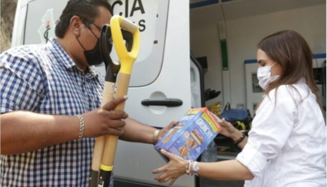 La candidata a la Gubernatura por la coalición “Juntos Haremos Historia en Nuevo León” logró hacer llegar agua, alimentos enlatados, pañales, leche en polvo y herramientas, como palas, picos y carretillas.