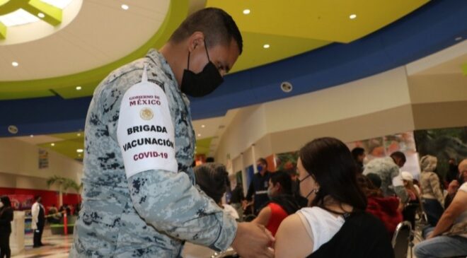 La aplicación del refuerzo se realiza en las instalaciones de Plaza Sendero a partir de las 8:00 hasta las 14:00 horas, donde este lunes 10 mil 910 personas fueron vacunadas.