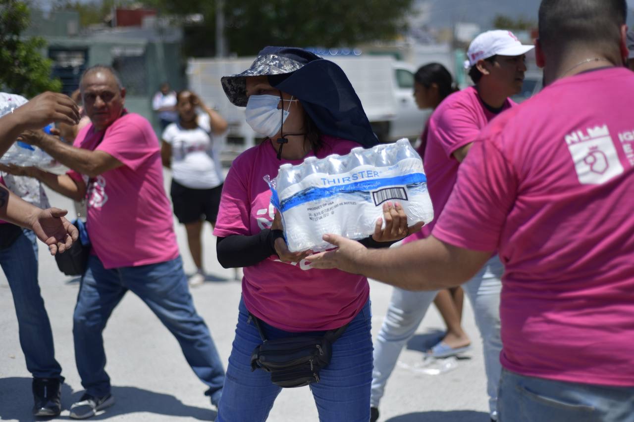 En el municipio de Escobedo, la Secretaria de Igualdad e Inclusión Martha Herrera; el alcalde de McAllen Tx, Javier Villalobos; Felipe Canales, Secretario de Ayuntamiento y funcionarios estatales iniciaron el reparto del vital líquido a las personas de la Colonia San Miguel.