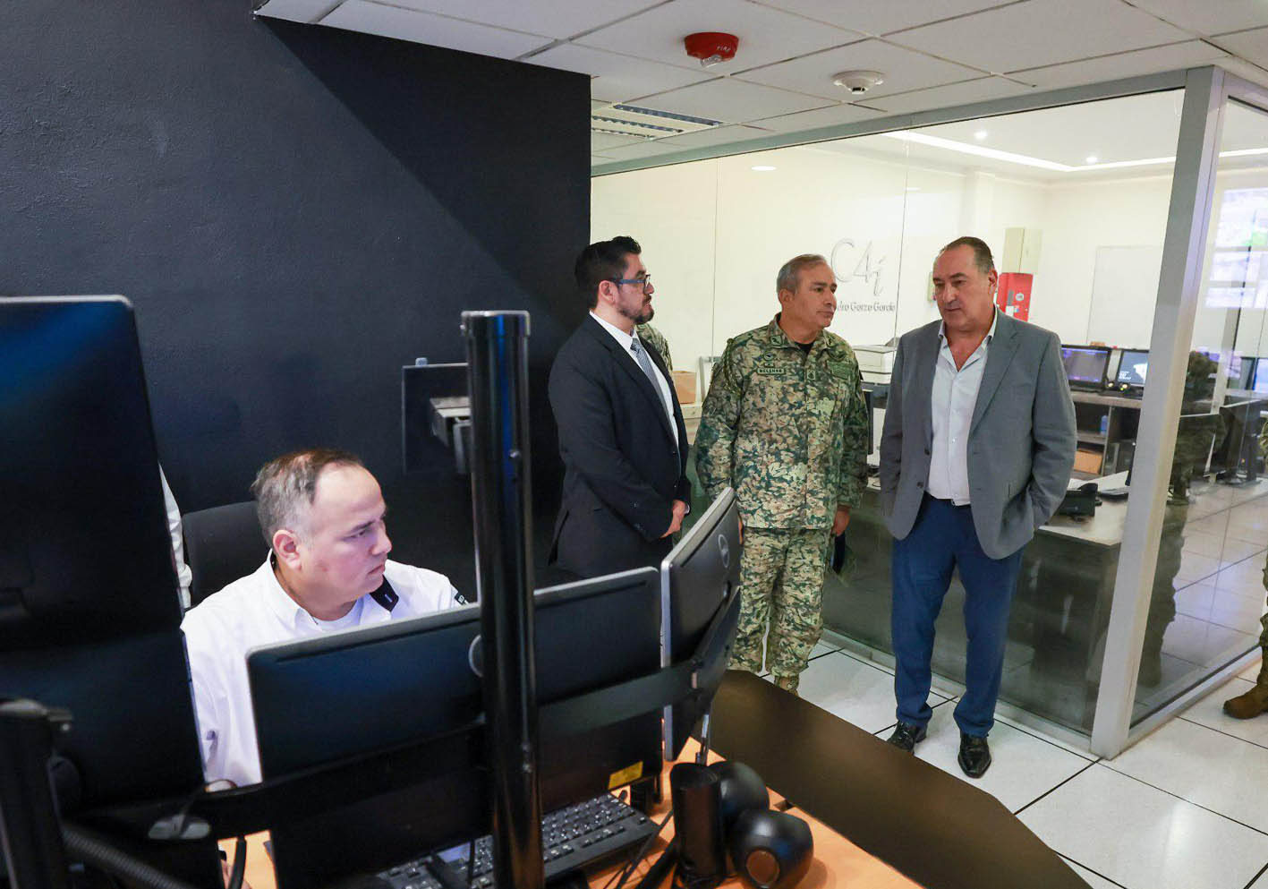 La visita incluyó un recorrido guiado por el director del C4, Jorge Ortiz, quien presentó al General Melchor Ruiz la tecnología y capacidad operativa del centro, utilizada para fortalecer la vigilancia en calles y avenidas del municipio.