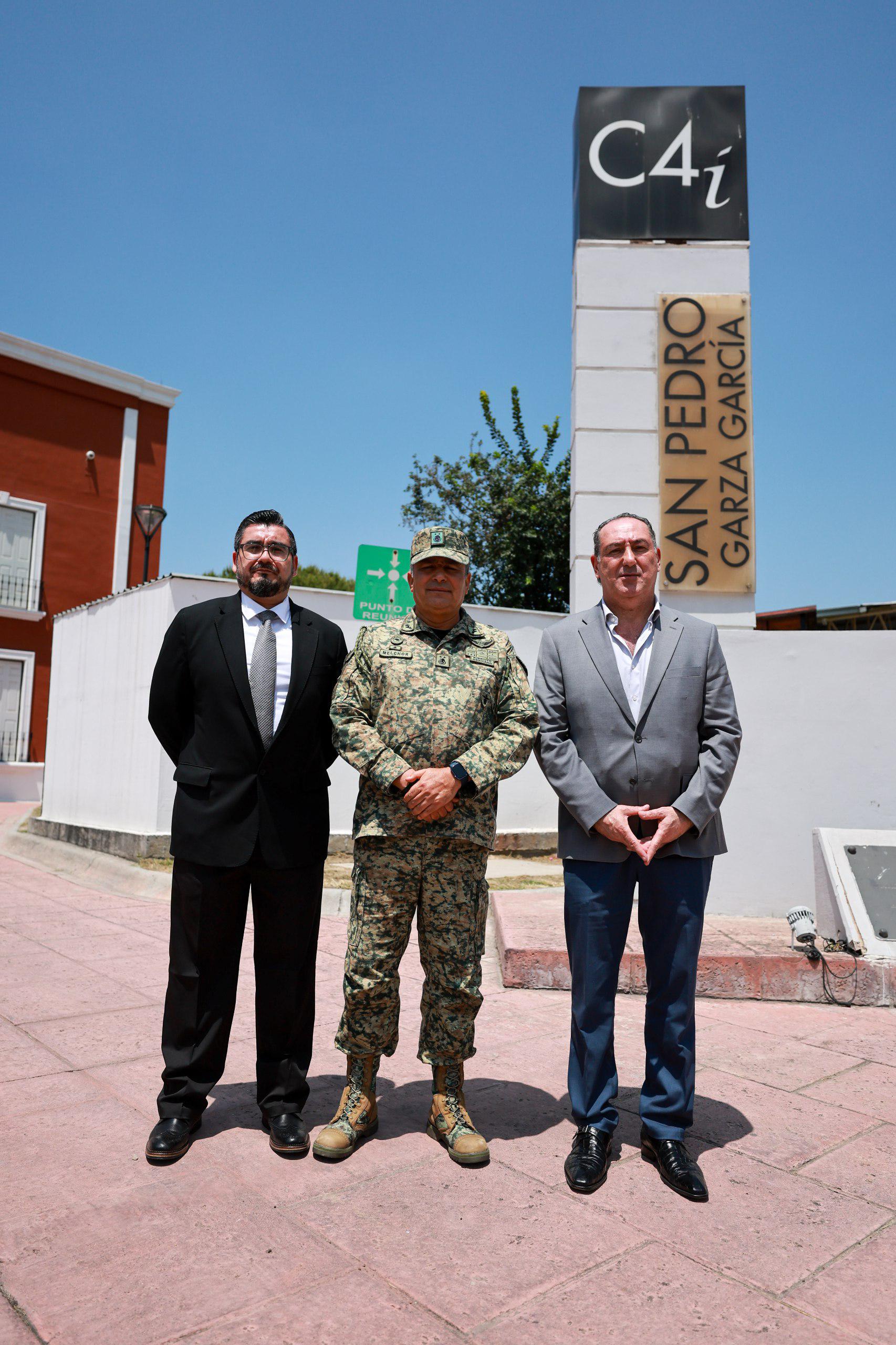 Durante la visita, sostuvo una reunión con el Secretario de Seguridad Pública de San Pedro, José Luis David Kuri, en la que reconoció la estrategia de seguridad implementada por el Gobierno municipal y reiteró la disposición del Ejército Mexicano para mantener y fortalecer los operativos conjuntos y labores de vigilancia.