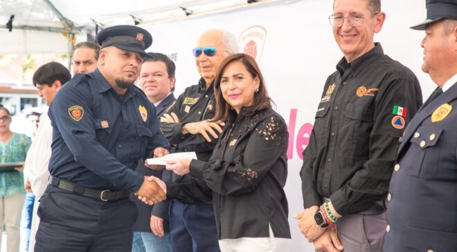 Asimismo, la Alcaldesa participó en la entrega de diplomas a 35 elementos que se graduaron de la Academia de Bomberos, convirtiéndose en la XIV generación de egresados.