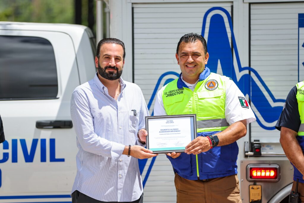 La entrega de los reconocimientos firmados por el alcalde Mauricio Fernández, estuvo a cargo del Secretario del Ayuntamiento, Mauricio Farah, quien felicitó a los rescatistas por su trabajo en la zona afectada.