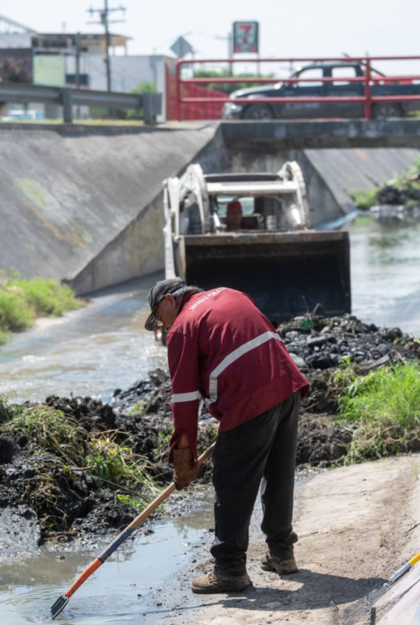 Los trabajos incluyen limpieza profunda de canales, retiro de azolve con maquinaria pesada, y en tramos donde la topografía lo impide, el desazolve se realiza de manera manual para no dejar ningún punto sin atención. Esto permite prevenir colapsos, acumulación de basura y el desbordamiento de agua durante lluvias intensas.