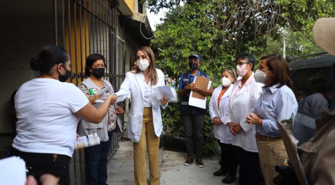 Por el incremento de contagios de Covid, y ante la temporada en que se registran más casos de dengue, la Alcaldesa, en coordinación con la Jurisdicción Sanitaria Número 4, a cargo de Ana María Villarreal Herrera, inició las acciones en colonias con mayor incidencia de casos, como el sector Fresnos la Silla.