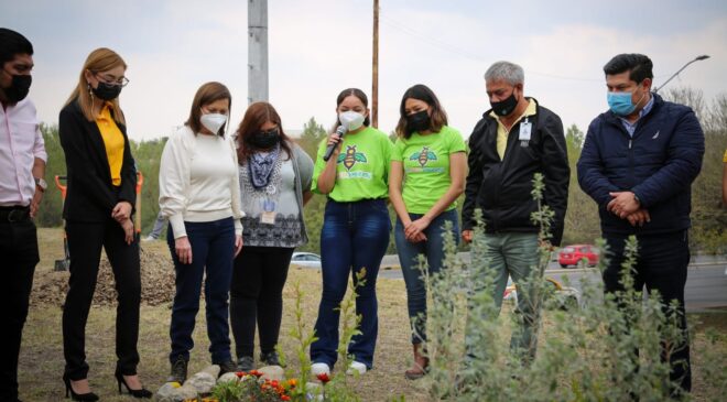 Además de plantas florales como lantana, ruellia, plumbagos y arbustos de cenizo, el cual produce flores violáceas y es considerado especie nativa de Nuevo León; dichas plantas, se explicó durante la actividad pedagógica, atraerán especies como abejas, insectos, murciélagos y colibríes en beneficio de la polinización.