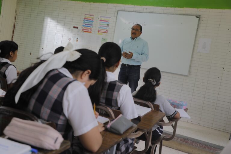 Después del “recreo” de los estudiantes, Mijes llegó al salón Primero “E” con un entusiasmo que evocaba sus años como docente, ahí, frente a los alumnos compartió sus conocimientos, anécdotas y, sobre todo, su inspiración para crecer y cumplir sus sueños.