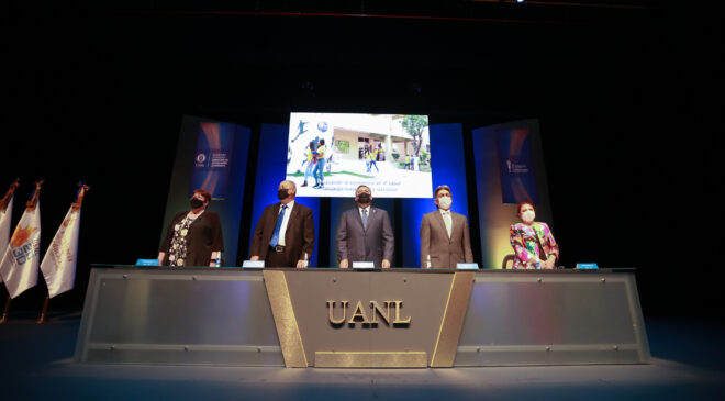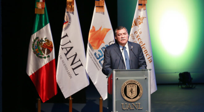 “Además, contamos con 23 licenciatura y 22 posgrados con doble titulación con instituciones educativas de España, Francia, Japón, Estados Unidos, Inglaterra y Perú, y recientemente llegamos a la cantidad de 90 programas educativos con acreditación y certificación internacional”, expresó el Rector de la UANL.