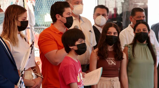 “Estamos muy contentos de mandar una clara emotiva y enérgica señal a todo el país que en nuevo León ya vamos a empezar a vacunar a nuestras niñas, niños y adolescentes menores de 18 años”, destacó García Sepúlveda.