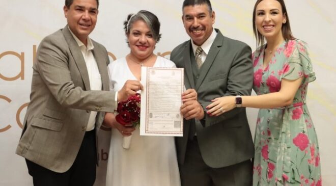 “Aquí en nuestro municipio de Juárez son alrededor de 140 parejas las que hoy en día están celebrando su matrimonio, y pues la verdad muy contentos de estar aquí en esta mañana, en este día tan importante para todos ellos”, expresó el Alcalde.