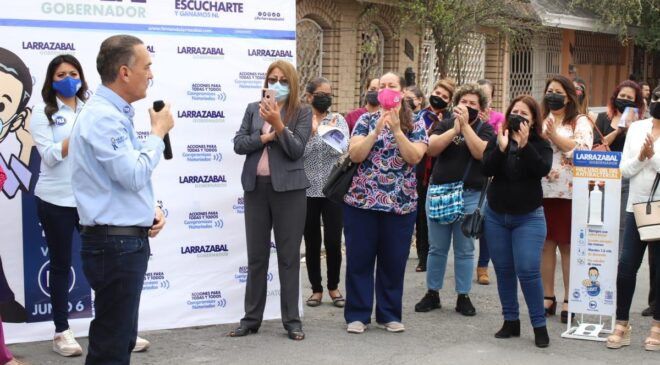 Ante la presencia de vecinas y dueñas de estancias infantiles en la Colonia Riberas del Río, en el municipio de Guadalupe, Fernando Larrazabal firmó su compromiso notariado de campaña número 11, en el que se comprometió a brindar un apoyo de 1 mil pesos por cada niño para reactivar todas las estancias del estado y permitir que las mujeres puedan continuar con sus trabajos y negocios, apoyando con esto, una reactivación económica inmediata y dando impulso a las familias de todo Nuevo León.