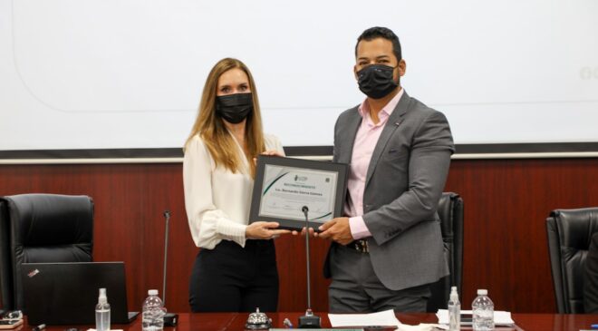 Durante la sesión, las y el Comisionado entregaron un reconocimiento a Bernardo Sierra Gómez por su destacada y profesional labor al frente de la presidencia en el lapso comprendido de enero del 2018 a enero del 2022.