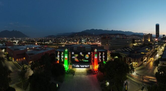 Al iniciar el mes de la patria, el municipio de Monterrey encendió los más de 120 adornos alusivos a la conmemoración de la Independencia de México que instaló en el palacio, en los alrededores del mismo y en el monumento de la avenida Pino Suárez en la zona centro.