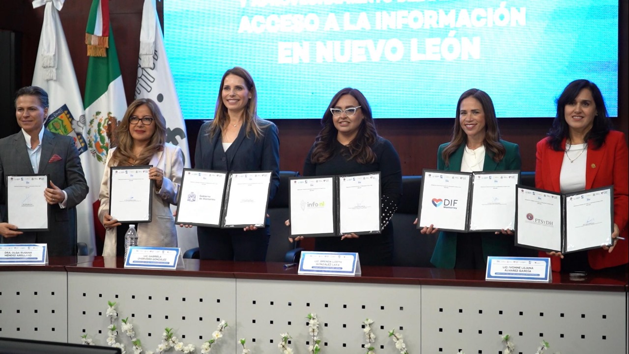 La firma fue encabezada por la presidenta del DIF Monterrey, Gaby Oyervides; la directora general, Ivonne Álvarez y la consejera presidenta del Instituto Estatal de Transparencia, Acceso a la Información y Protección de Datos Personales (INFO NL), Brenda González.