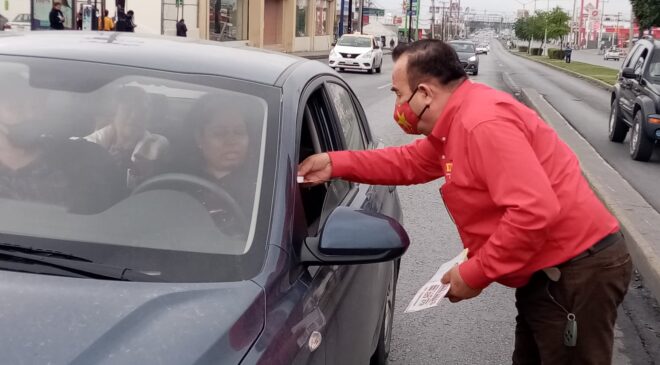 Fue en el cruce de Raúl Salinas y Escamilla donde en punto de las 12 del medio día arrancó con su campaña entregando pegotes y volantes con sus principales propuestas y saludando a los escobedenses a fin de que le brinden de nueva cuenta la oportunidad de gestionar las reformas y leyes de una curul en la Cámara de Diputados.