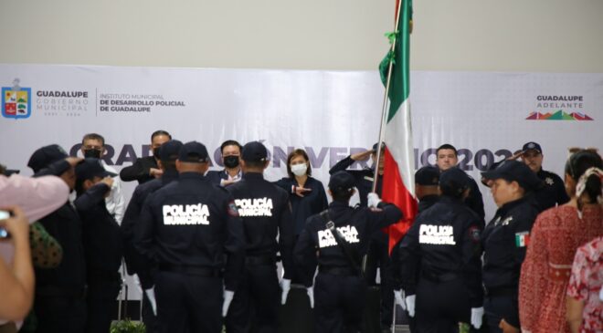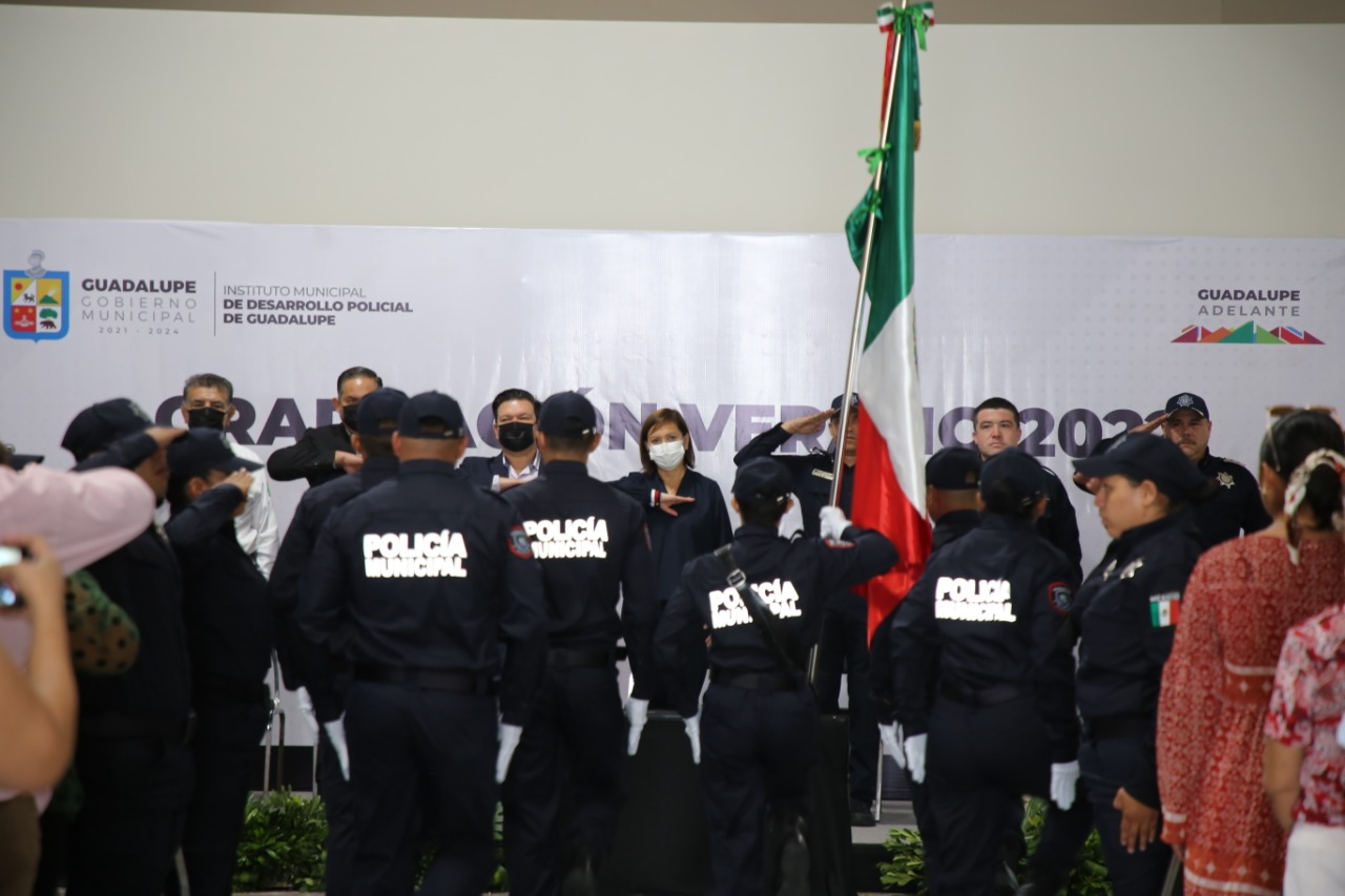 La Policía de Guadalupe incorporó 45 cadetes más que concluyeron su formación en el Instituto Municipal de Desarrollo Policial, informó la Alcaldesa Cristina Díaz.