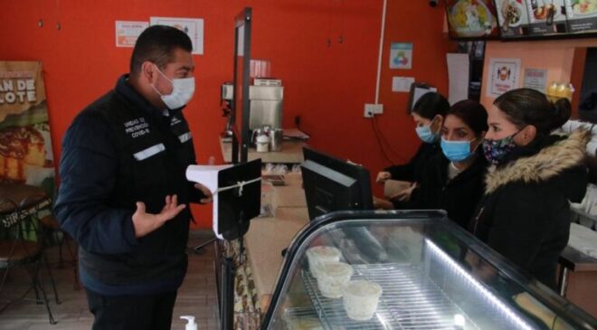 Con estas acciones se brinda un acompañamiento y corresponsabilidad con el comercio local para prevenir contagios y continúe la reactivación económica, indicó el alcalde Jesús Nava Rivera, al encabezar la visita a negocios.