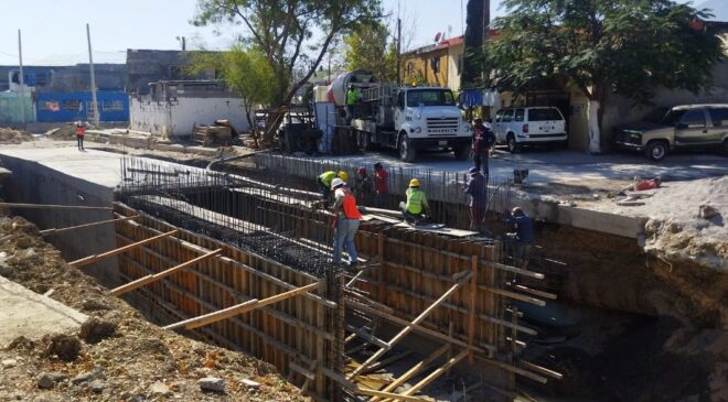 Finalmente, se construye un canal pluvial, junto a la rehabilitación de la barda perimetral   y vita pista en la colonia Cumbres San Agustín, en las calles Nuevo México, Albuquerque y San Diego, donde se instalan 90 metros lineales con 3.1 millones de pesos. Al momento se ha avanzado casi el 30 por ciento de la obra.