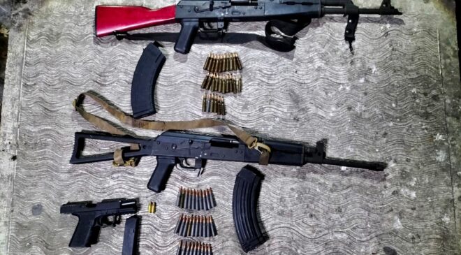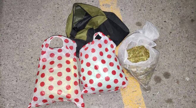Al realizarles una revisión se les encontraron dos armas largas AK-47, un arma corta marca Glock, 40 dosis de hierba verde y seca con las características de la marihuana, así como una caja de cartón con cinta canela que contenía marihuana en greña, cuatro bolsas con la misma hierba, una báscula digital y dinero en efectivo.