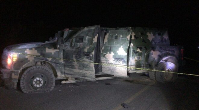 En el lugar las autoridades aseguraron un vehículo “Superduty” con blindaje artesanal y camuflaje, ocho armas largas de diversos calibres, diferentes cargadores de arma larga así como equipo táctico