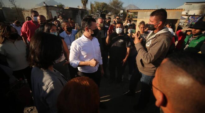 Con el fin de reiterar su apoyo a las decenas de familias afectadas por un incendio en el terreno irregular conocido como “El Pozo”, al norte de Monterrey, el Presidente Municipal, Luis Donaldo Colosio Riojas recorrió hoy la zona y dialogó con los vecinos a quienes ofreció oportunidad de contar con una vivienda digna, con certeza jurídica y con todos los servicios.