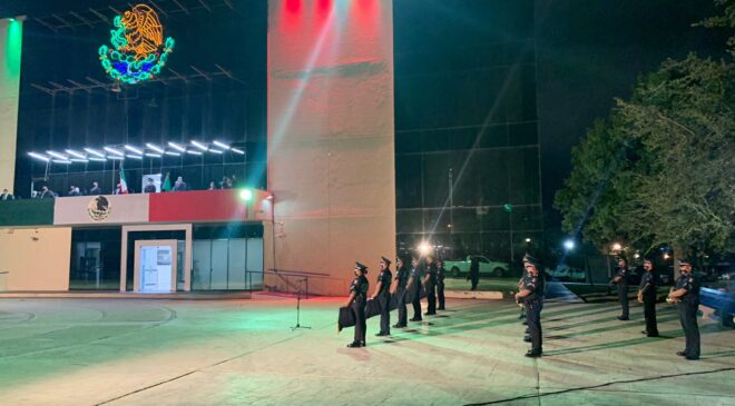 Fue en punto de las 9 de la noche, cuando la Alcaldesa Elizabeth Galicia Ruiz encabezó la Ceremonia Virtual del 211 Aniversario de la Independencia de México desde el balcón de la Torre Administrativa, acompañada por el Diputado Federal Héctor Castillo Olivares, el Legislador Local Roberto Carlos Farías García, síndicos, regidores y secretarios de la Administración.